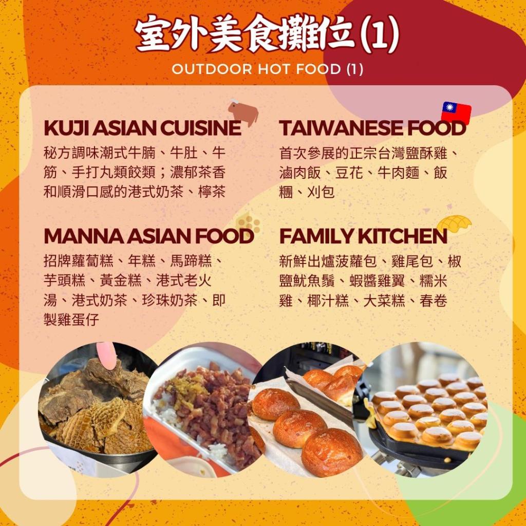 行年宵最緊要係咩?梗係「食」啦! 100 個檔仔入面,戶外熟食食攤位就有 8 檔!小編最期待就係竟然有台灣美食!有肉燥飯、鹽酥雞、刈包!諗起都流晒口水![]()