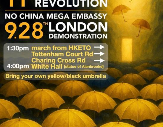 9月28日舉行第六場反對中國選址倫敦舊皇家鑄幣廠興建超級大使館的示威遊行,為信念發聲。