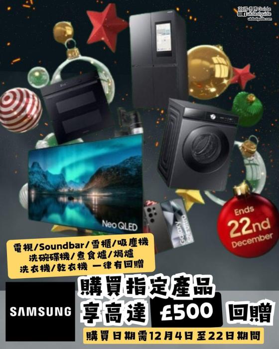 於12月4日至12月22日期間,經官網或指定零售商買 Samsung 指定產品,即可提交申請高達